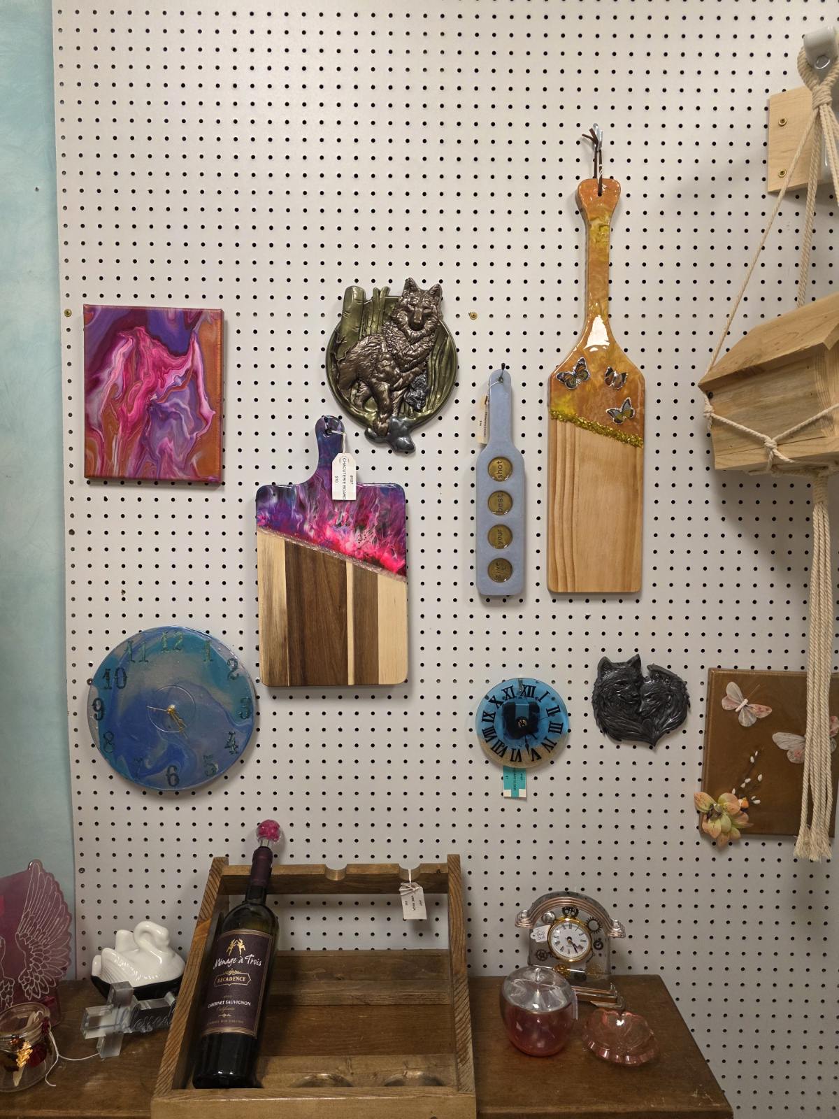 Captivating wolf wall hanging is great for those wolf lovers in your life. Look closely, there’s not just the one wolf but two. Can you find the second one? Hint, its hiding in the trees.